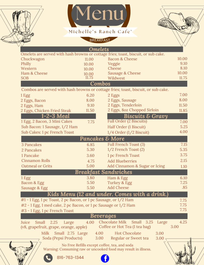Michelle’s Ranch Cafe Menu Design